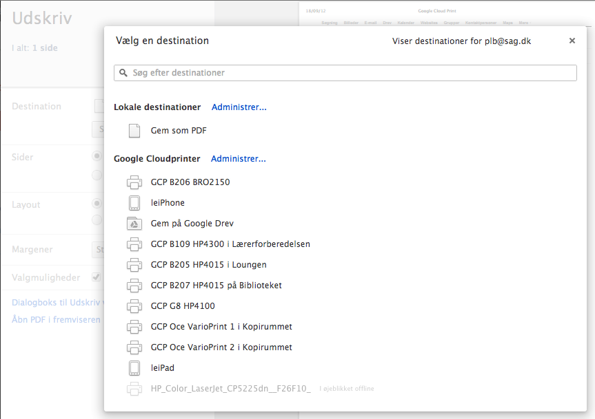 Google Cloud Printere er nu placeret direkt i Google Chrome print dialogen, således at du let kan printe dine Google Dev, Docs og downloadede dokumenter